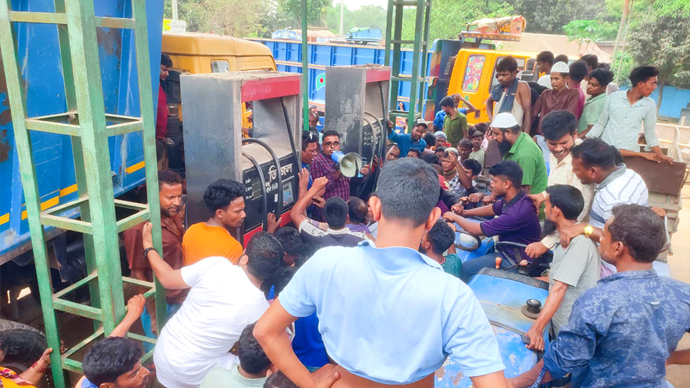 ছবি: জামালপুরের সরিষাবাড়ীতে জ্বালানি তেলের জন্য ভিড়