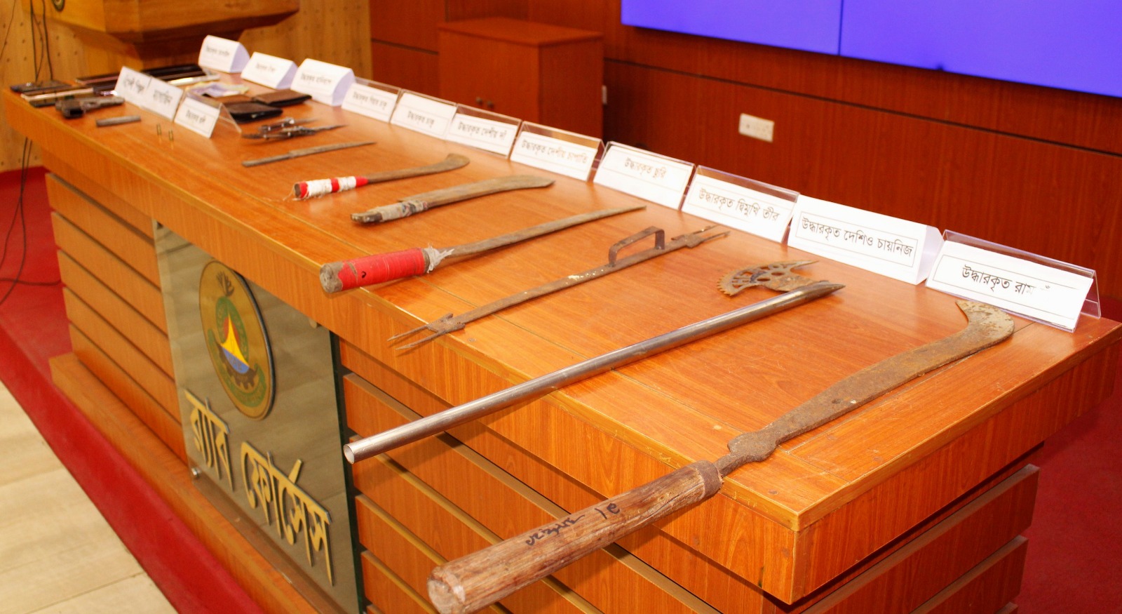 সন্ত্রাসী গ্রুপ বিডিএসকে গ্যাংয়ের প্রধান হৃদয় ওরফে হিটার হৃদয়সহ ৮ জন সদস্যকে দেশি ও বিদেশি অস্ত্রসহ গ্রেপ্তারের বিষয়ে আয়োজিত সংবাদ সম্মেলনে এসব তথ্য জানা, র্যাব লিগ্যল এন্ড মিডিয়া উইংয়ের পরিচালক কমন্ডার খন্দকার আল মঈন। রবিবার দুপুরে রাজধানীর কাওরান বাজারের র্যাব মিডিয়া সেন্টারে সংবাদ সম্মেলন অনুষ্ঠিত হয়।