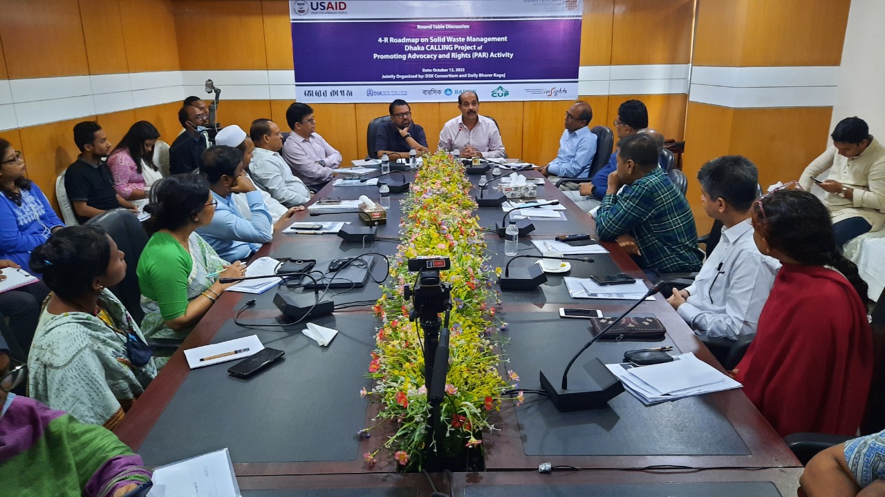 বৃহস্পতিবার (১৩ অক্টোবর) সকালে দৈনিক ভোরের কাগজের কনফারেন্স রুমে কঠিন বর্জ্য ব্যবস্থাপনা সংক্রান্ত ফোর আর রোডম্যাপ’ শীর্ষক গোলটেবিল আলোচনায় বক্তারা এসব কথা বলেন। বাংলাদেশের জাতীয় পর্যায়ের সংস্থা দুঃস্থ স্বাস্থ্য কেন্দ্র (ডিএসকে) তার কনসোর্টিয়াম সদস্য সংস্থাগুলোকে (বারসিক, কাপ ও ইনসাইটস) সঙ্গে নিয়ে ইউএসএআইডি এর আর্থিক সহায়তায় এবং প্রোমোটিং অ্যাডভোকেসি অ্যান্ড রাইটস (পার) কর্মসূচির আওতায় কাউন্টার পার্ট ইন্টারন্যাশনালের কারিগরী সহযোগিতায় ‘ঢাকা সিটিজেন অ্যাডভোকেসি কোলাবোরেশন অ্যাগেইনস্ট পোলিউটিং অ্যানভায়োনেম্টে (ঢাকা কলিং) প্রকল্পটি গণতান্ত্রিক সুশাসন ও নাগরিক অংশীদারিত্ব বৃদ্ধির লক্ষ্যে নাগরিক সমাজের প্রতিষ্ঠানগুলোকে দায়িত্বশীল করার জন্য অধিপরামর্শ সংক্রান্ত কাজ করছে। এরই ধারাবাহিকতায় ঢাকা কলিং প্রকল্পের উদ্যোগে এই অনষ্ঠানের মিডিয়া পার্টনার হয়েছে ভোরের কাগজ।