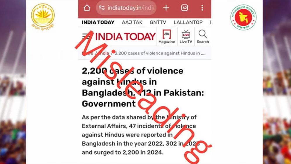 ইন্ডিয়া টুডে ও আনন্দবাজারসহ বেশ কয়েকটি ভারতীয় সংবাদমাধ্যম শুক্রবার (২০ ডিসেম্বর) দেশটির পররাষ্ট্র মন্ত্রণালয়ের বরাত দিয়ে বলেছে, বাংলাদেশে হিন্দুদের বিরুদ্ধে ২০২২ সালে ৪৭টি, ২০২৩ সালে ৩০২টি ও ২০২৪ সালে ২ হাজার ২০০টি সহিংসতার ঘটনা ঘটেছে।